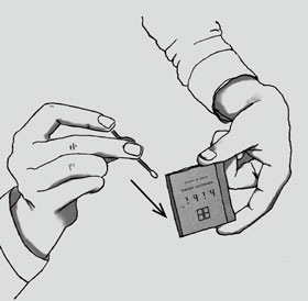 ②hibiを取り出し、頭部分を箱の茶色い側薬(擦る部分)に対し