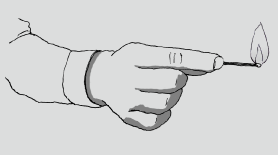 ③着火したら、頭を水平よりやや下にして持ち、お香に火が燃え移って 自然に消えるまでお待ちください。自然に火が消える前に消すと、お香に火が燃え移らなかったり、頭のワックス(着火剤)が燃え切らずに、最初の香り立ちにマッチの臭いが混じる場合があります。