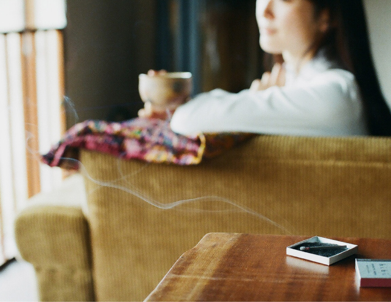 カーテンを開けて、レモングラスの香りに火を灯す。